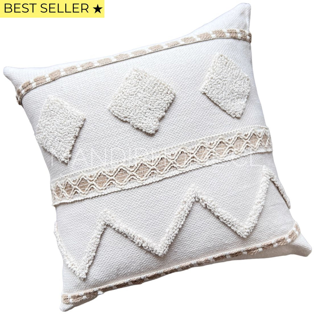 ¡Transforma tu espacio con la Funda de Cojín 100% Algodón, color crudo, con aplicaciones de hilo, bordados y yute! Esta exquisita pieza combina la suavidad y durabilidad del algodón con detalles artesanales que realzan y dar calidez a cualquier ambiente. Los bordados meticulosos añaden un toque de elegancia y artesanía, mientras que las aplicaciones de yute aportan textura y carácter.