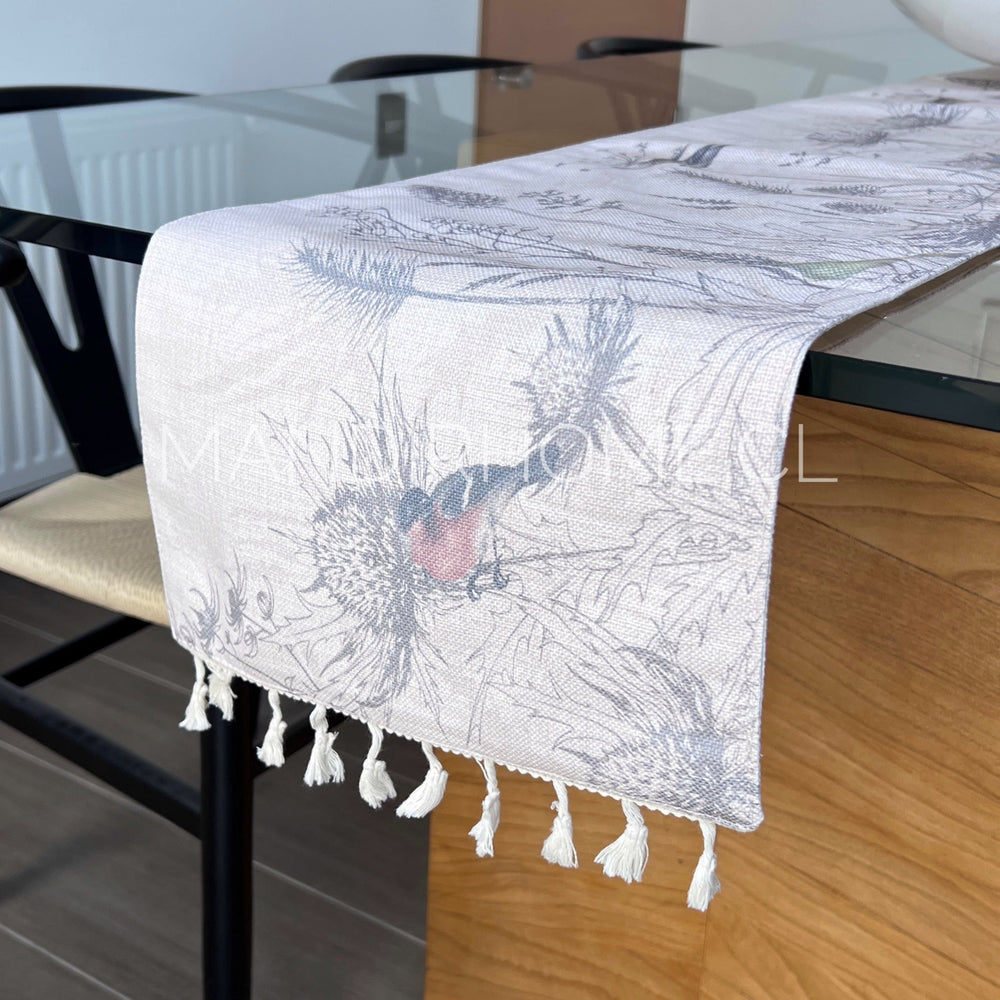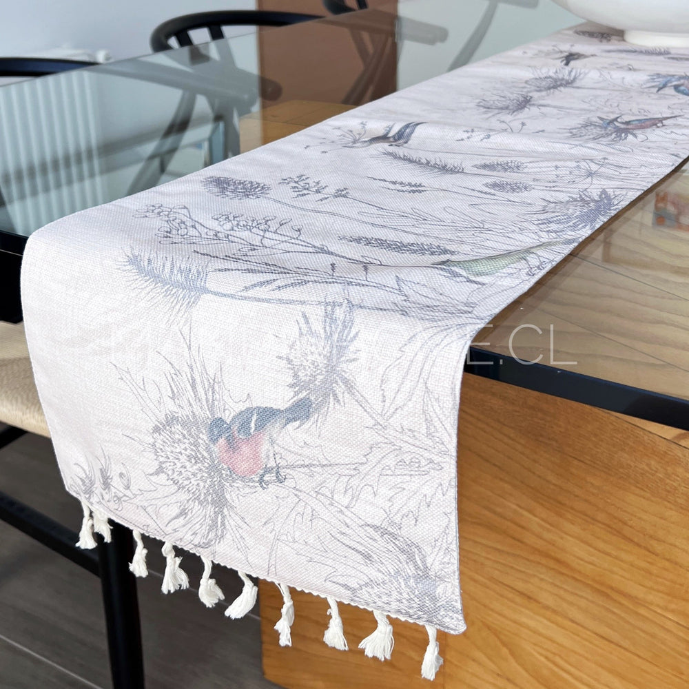 ¡Realza la elegancia de tu mesa con nuestro hermoso camino de mesa de lona forrada con flecos y diseño de Colección! 🌸✨