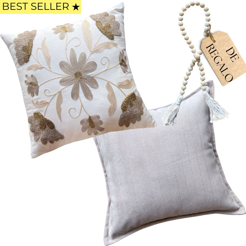 Diseño Perfecto: Una funda bordada con detalles exquisitos que añaden textura y un toque artesanal, mientras que la otra, con delicada pestaña, equilibra con elegancia y sutileza.