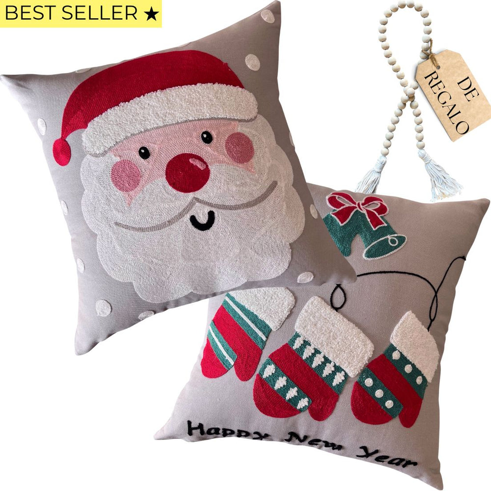 Este set incluye dos fundas en fondo gris bordadas, diseñadas para agregar un toque elegante y sofisticado a tu hogar. Ambas fundas están delicadamente bordadas con detalles finos, creando un diseño único que combina con diversos estilos de decoración.