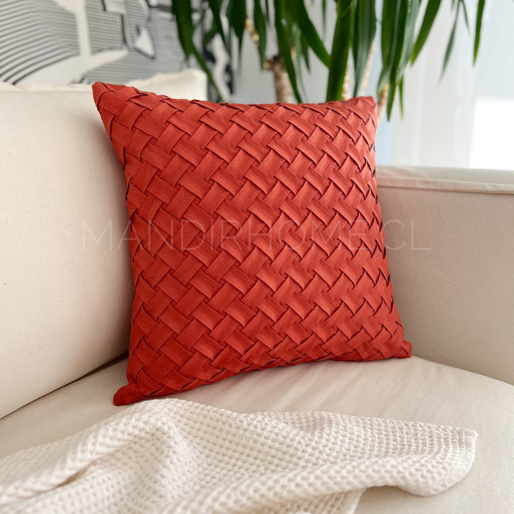 ¡Quedan 2! Funda Cojín Gamuza Entrelazado Naranjo Cuadrada