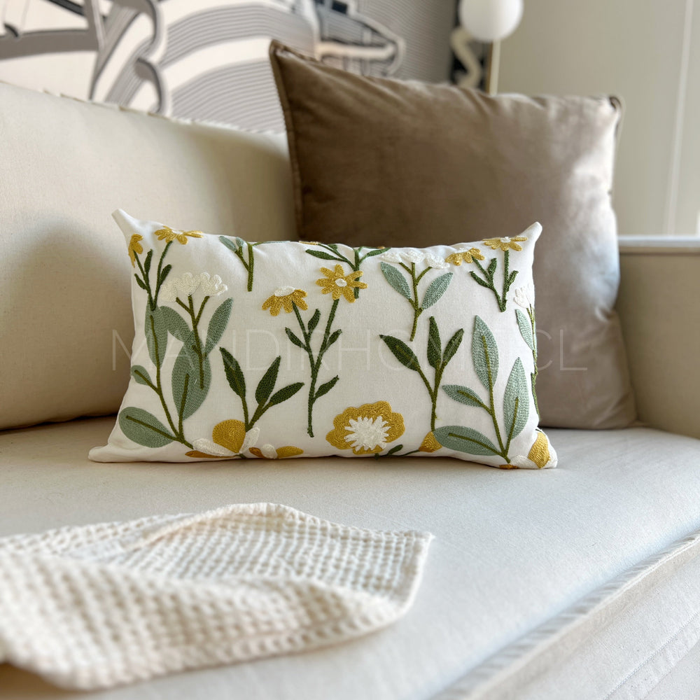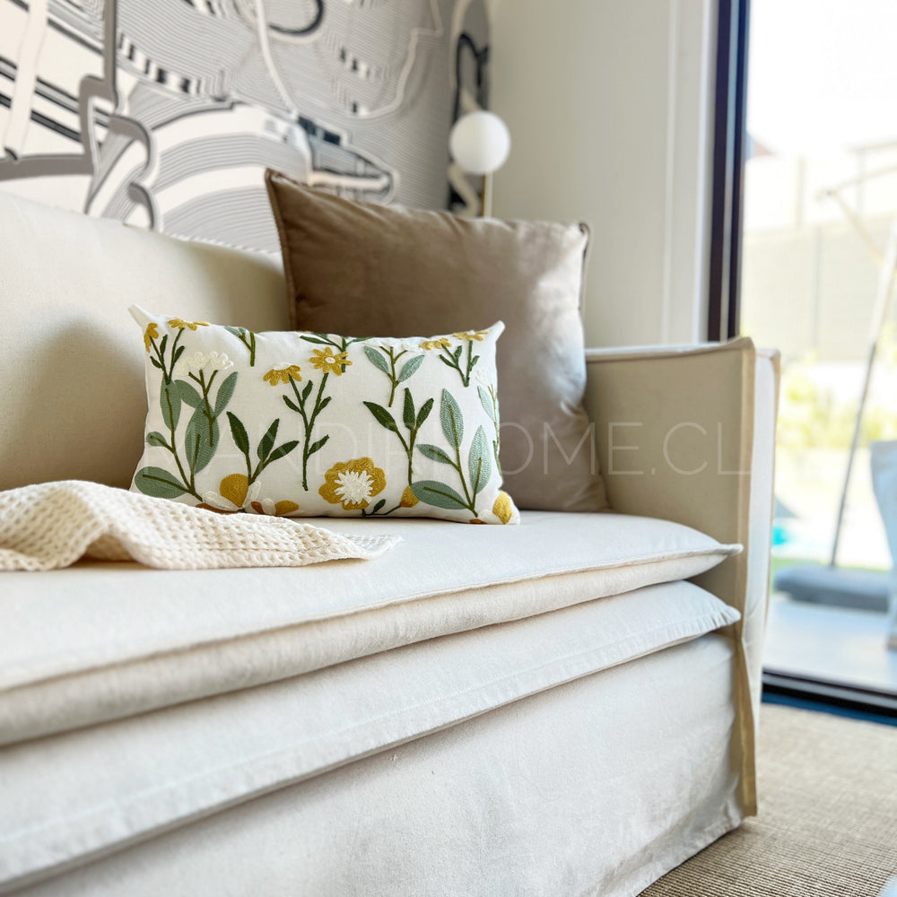 Funda de cojín confeccionada en algodón natural, suave al tacto y con terminaciones cuidadas.