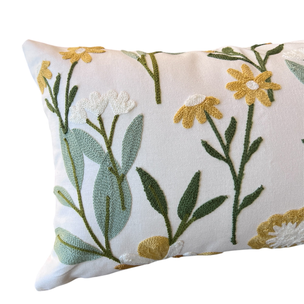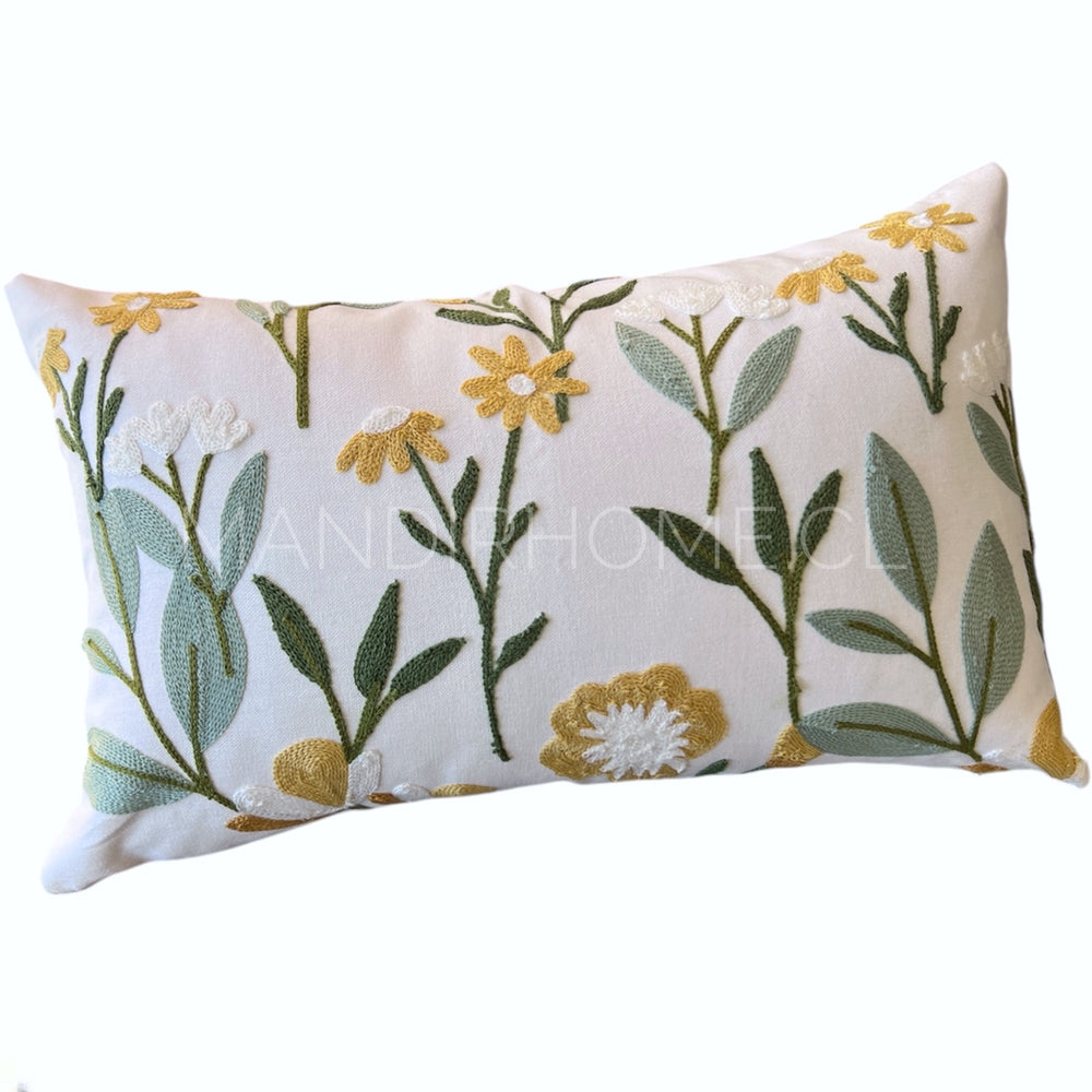 Colores del bordado: Mostaza, verde, menta, crudo.