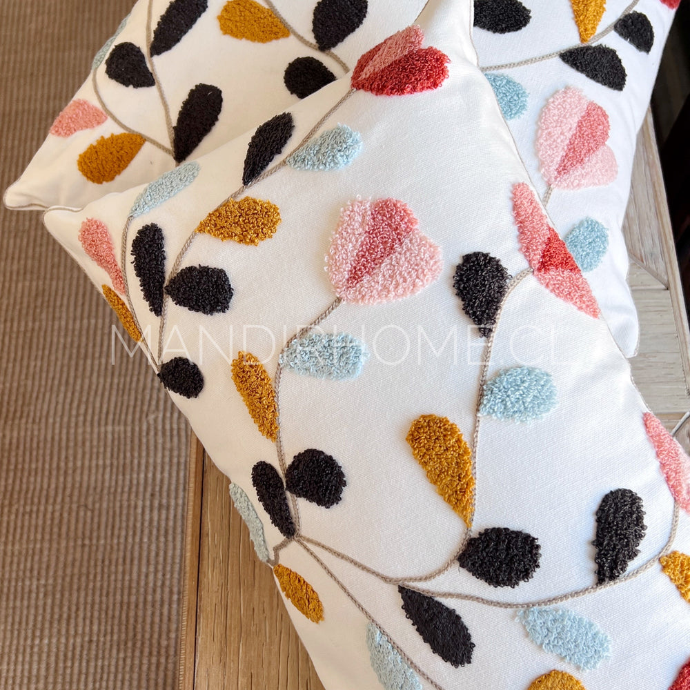 Funda de cojín confeccionada en algodón natural, suave al tacto y con terminaciones cuidadas.