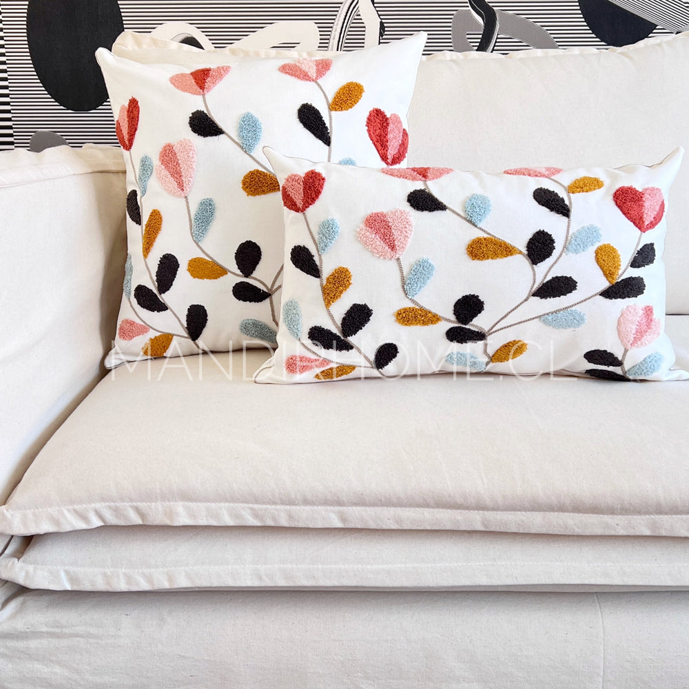 Medida 50x30 cm, con cierre lateral invisible y reverso de la misma tela.