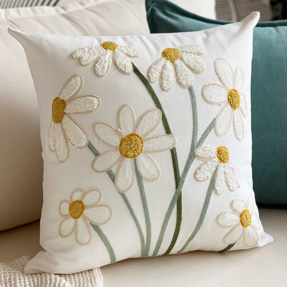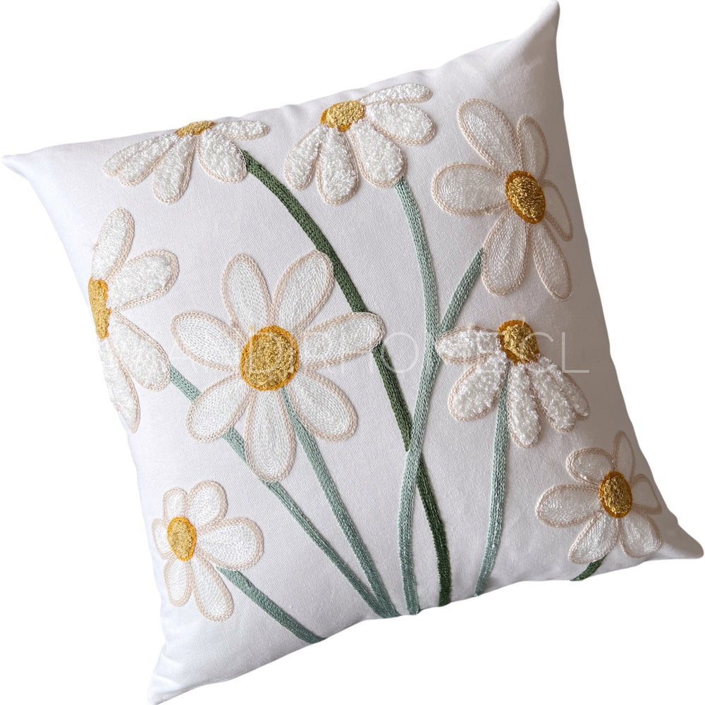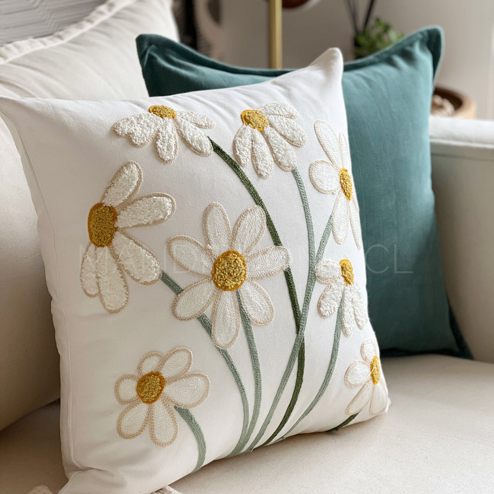 Funda de Cojín Bordado Margarita Pastel Cuadrada