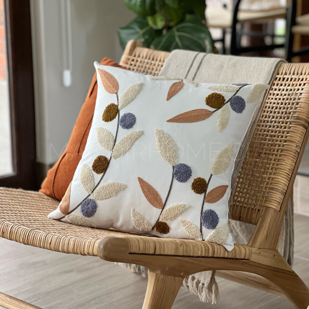 Funda de cojín confeccionada en algodón natural, suave al tacto y con terminaciones cuidadas.