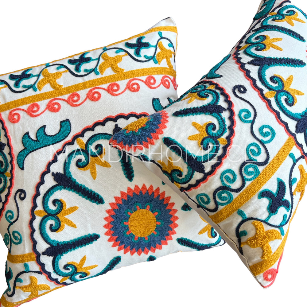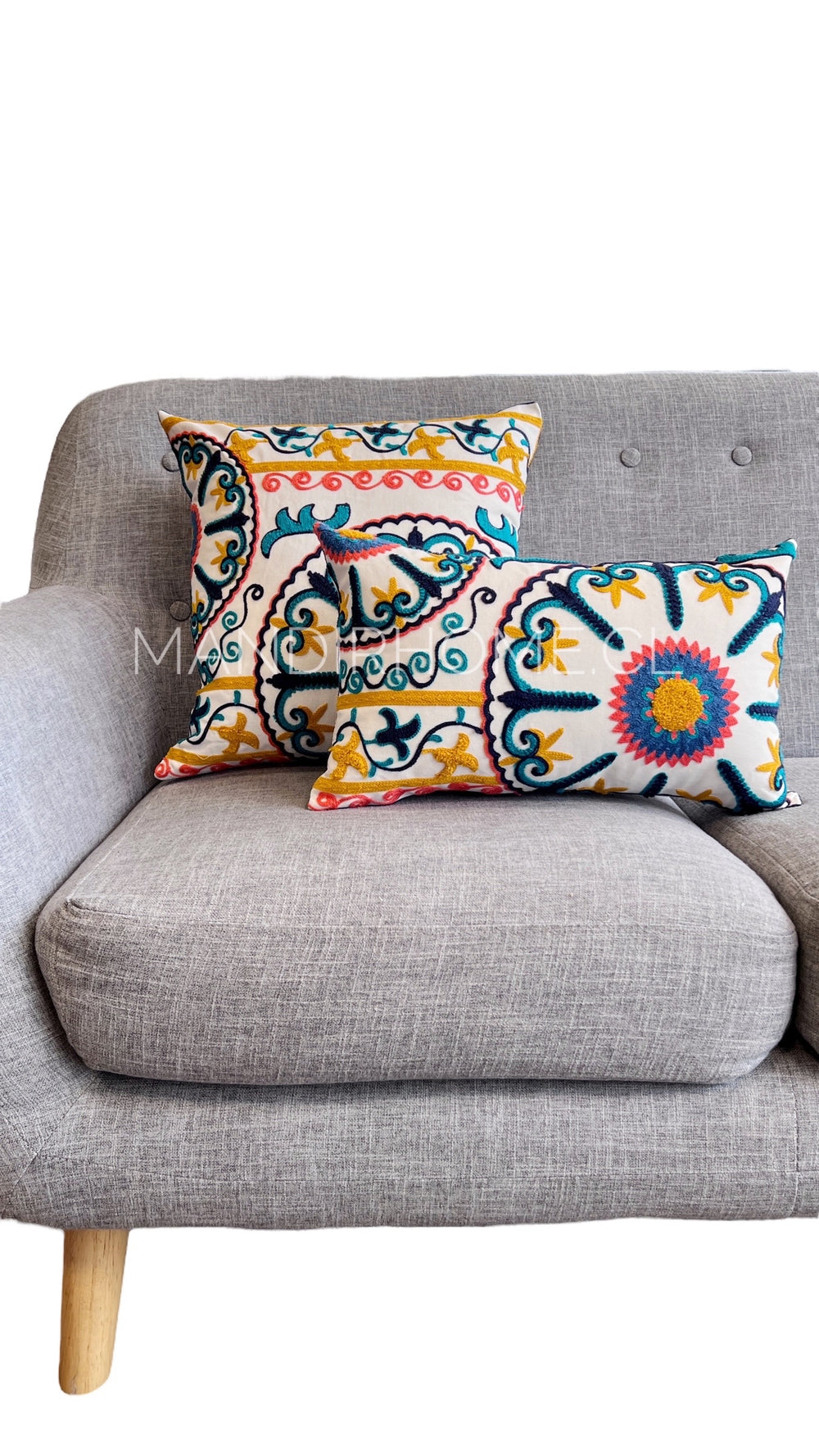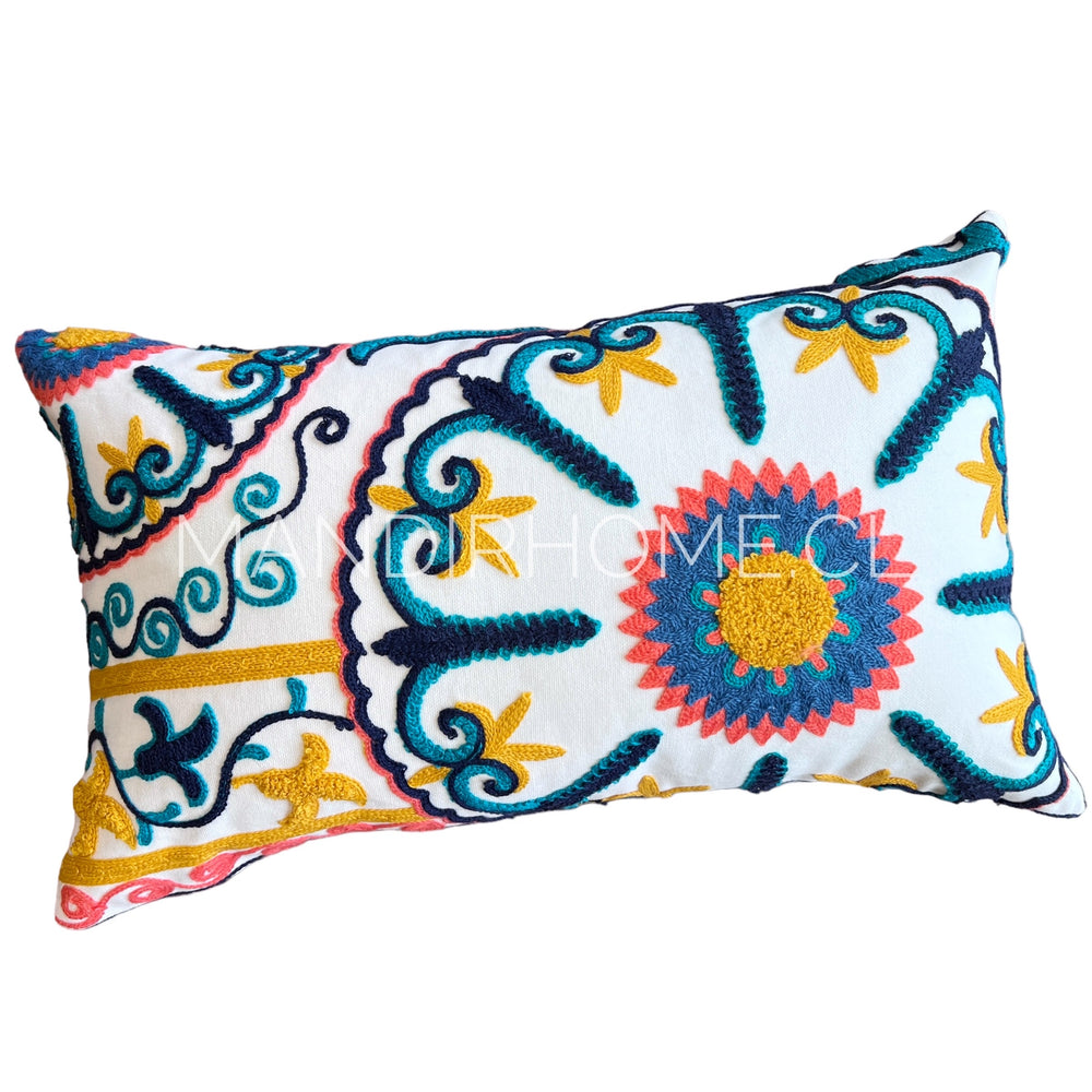 Colores del bordado: Turquesa, Azul, Mostaza, Coral.