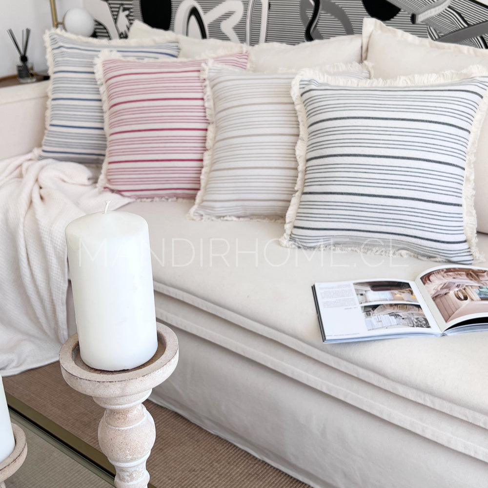 ¡Dale un toque fresco y natural a tu hogar con esta increíble funda de cojín! Confeccionada en una mezcla premium de lino y algodón, destaca por su diseño de rayas y los delicados flecos de algodón que bordean todo el perímetro. Esta funda es perfecta para crear ambientes relajados y modernos, tanto en interiores como en terrazas.