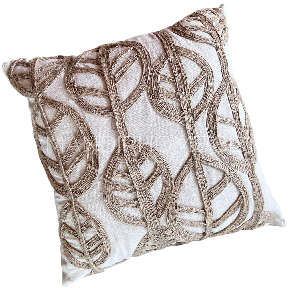 Funda de Cojín Natural Rústico Yute Hoja Redonda Cuadrada