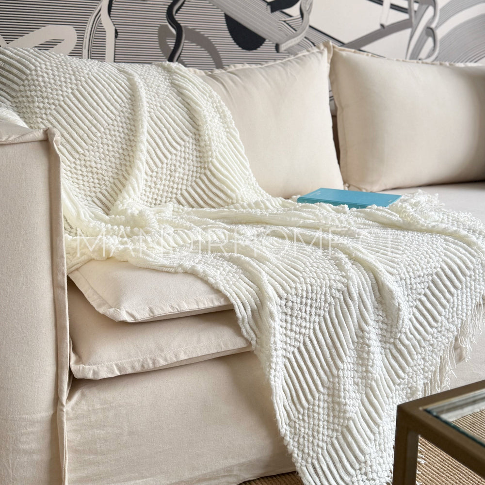 Añade calidez y estilo a tu hogar con nuestra manta decorativa en tono crudo. Suaves y acogedoras, sus fibras de alta calidad brindan una textura agradable al tacto, perfecta para disfrutar en el sofá, la cama o tu rincón favorito. Su tamaño de 210x120 cm la hace ideal para abrigarte en días fríos o como un complemento para tu decoración.