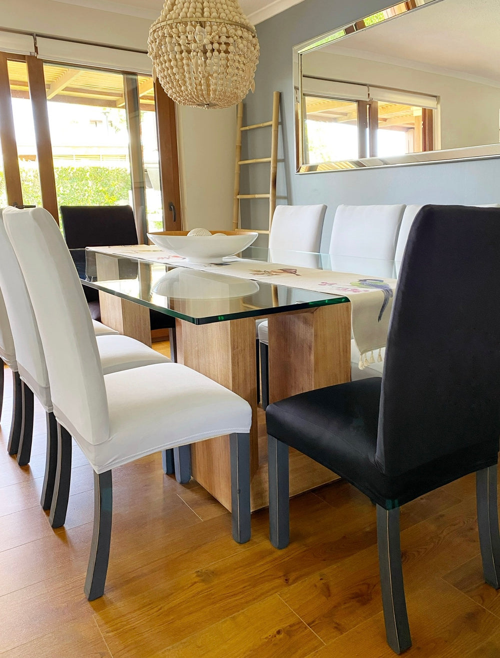 • Material Premium: Hechas de Lycra Gamuzada de primera calidad, estas fundas no solo protegen tus sillas, sino que también añaden un toque de elegancia a tu espacio.
