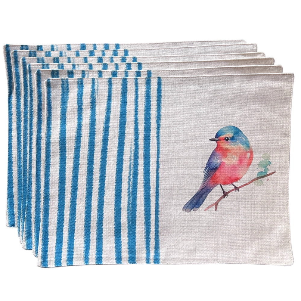 SET 6 Individuales Pajarito Turquesa Tela Repelente y Antimanchas