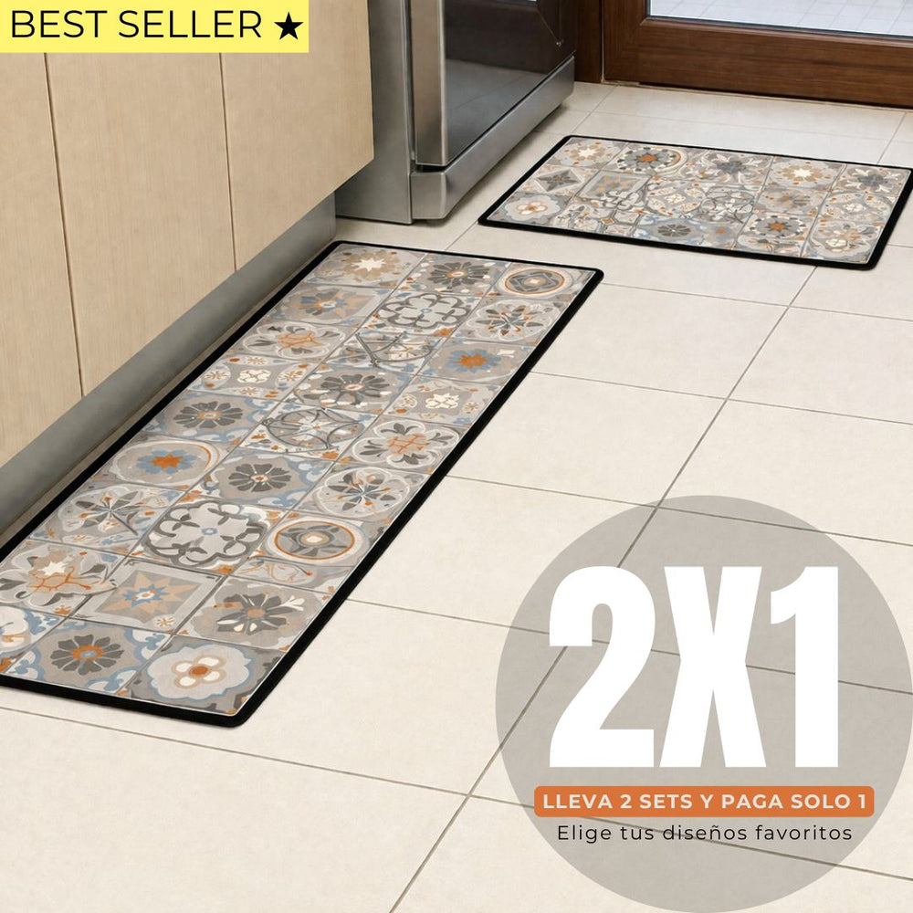 Set Alfombras de Cocina Mosaico Arena y agua Antideslizante y Absorbente | Anticharcos y Lavables