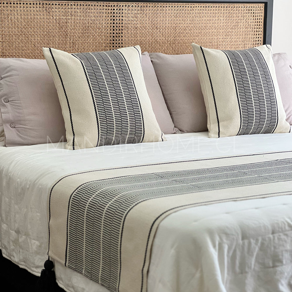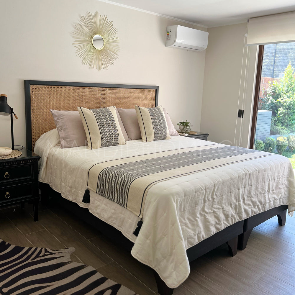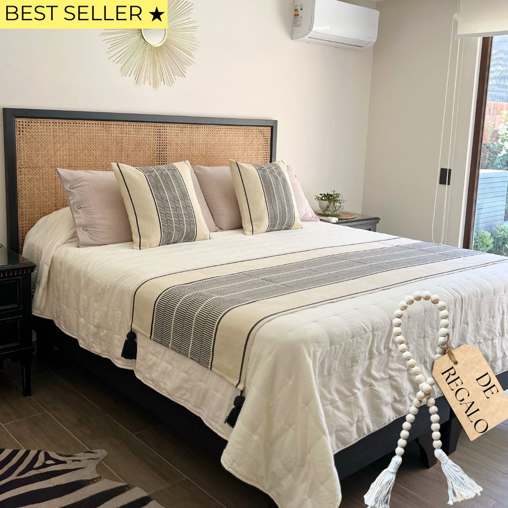Renueva tu dormitorio con nuestro Set Piecera Trama Negro Tejido con Borlas, un conjunto pensado para lograr una cama armada, equilibrada y con carácter en segundos.