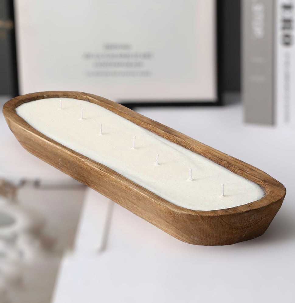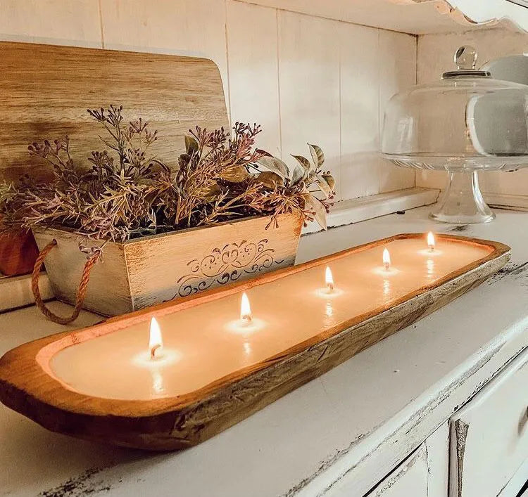 ¡Transforma tu hogar con la calidez y encanto de nuestra vela de soya en batea de madera con 7 mechas! 🕯️✨